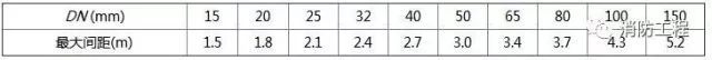 ①管道應(yīng)固定牢靠,管道支、吊架的大間距應(yīng)符合下表的規(guī)定。